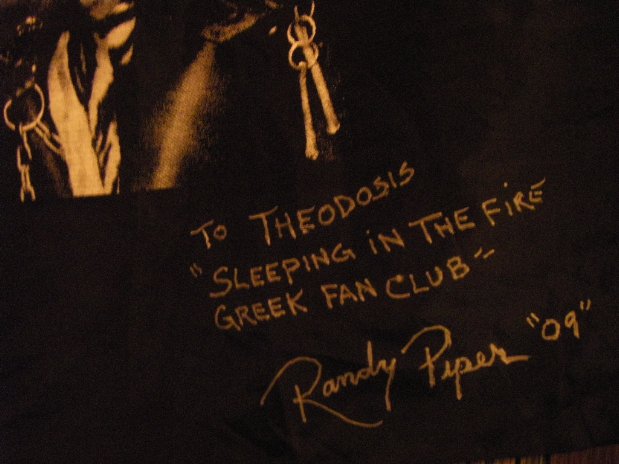 Signed and dedicated to me & Sleeping In The Fire greek fan-club by Randy Piper (from Randy Piper's personal collection)