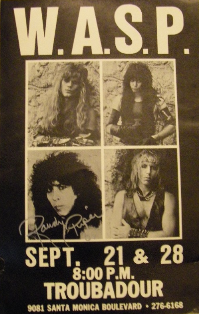 21 & 28 SEP 1983 - Troubadour, USA (signed by Randy Piper) (from Randy Piper's personal collection)