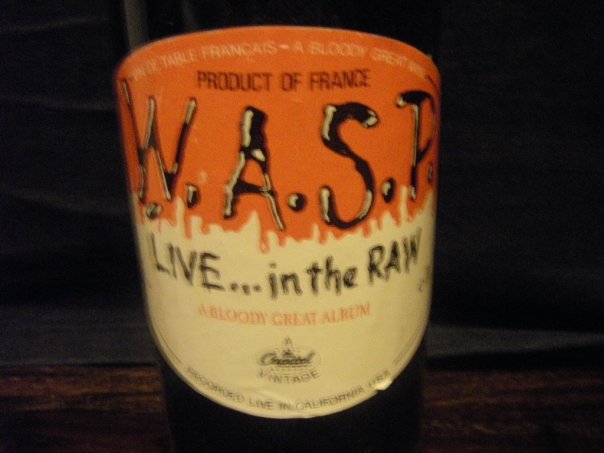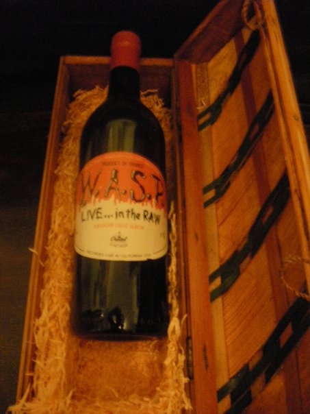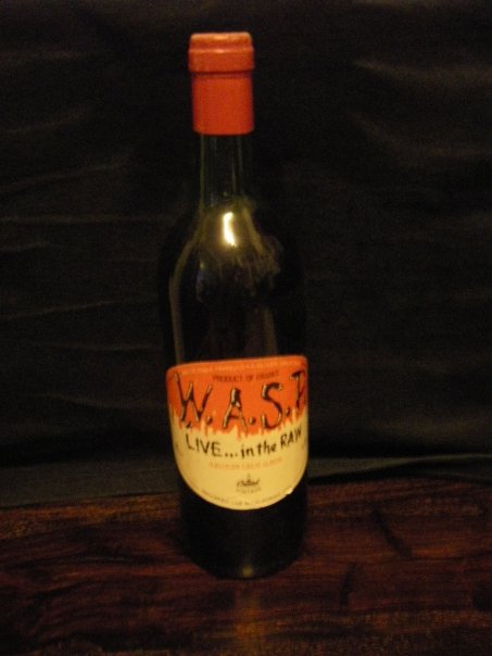 Issued as a promotional item for their live album. This lot is an un-opened bottle of French red wine complete with foil cap